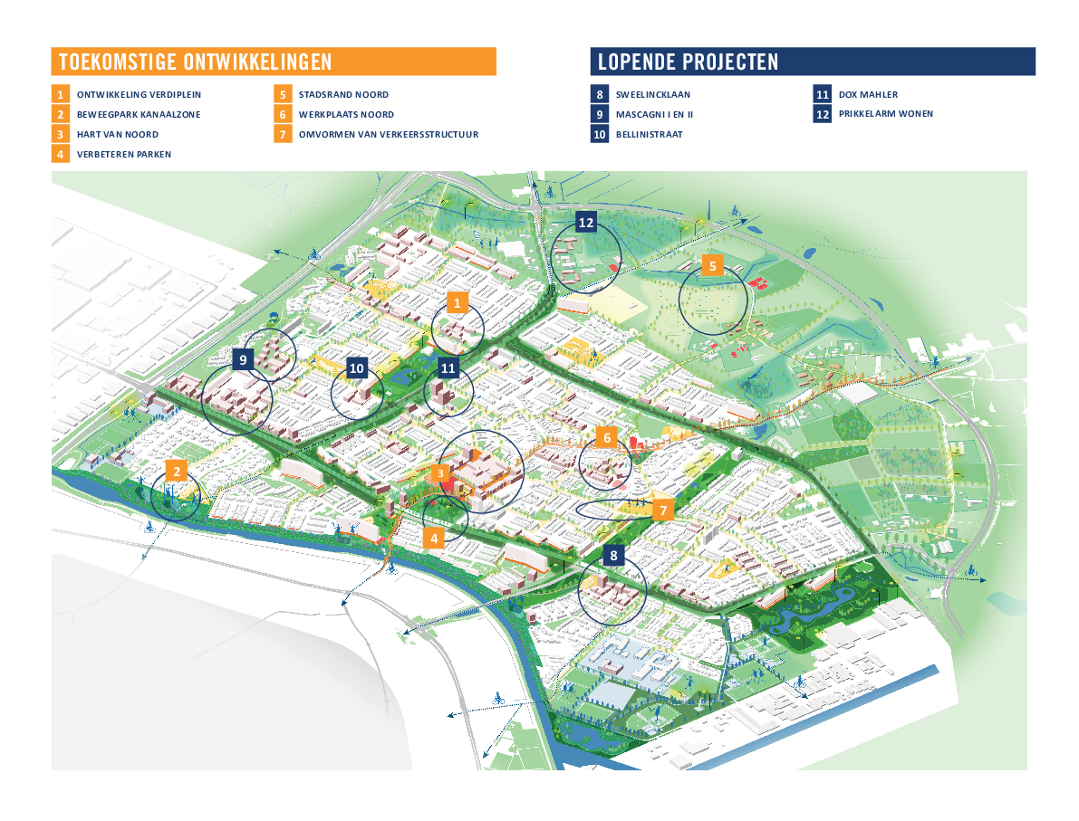 Niet alle toekomstige ontwikkelingen en projecten starten meteen. De komende maanden wordt duidelijk welke ontwikkelingen wanneer gaan plaatsvinden. Naast deze plannen voor de lange termijn, werken we aan 'snelle winsten' – ideeën vanuit de wijk die snel uitgevoerd kunnen worden en zorgen voor directe verbeteringen. Via het wijkfonds In de Wijk Geworteld en andere initiatieven kunnen inwoners bovendien zelf bijdragen aan een nog mooier Noord.