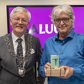 Luud de Brouwer ontving 19 juni de Tilburg Trofee uit handen van burgemeester Weterings. Dhr. de Brouwer krijgt de onderscheiding onder andere voor zijn belangrijke rol in de digitalisering van het Regionaal Archief Tilburg.