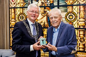 Marijn van Kempen ontving 27 augustus de Zilveren Erepenning uit handen van locoburgemeester Marcelle Hendrickx voor zijn jarenlange inzet als bestuurslid van Stichting Cools en zijn vrijwilligerswerk voor 'Boeken rond het Paleis'.