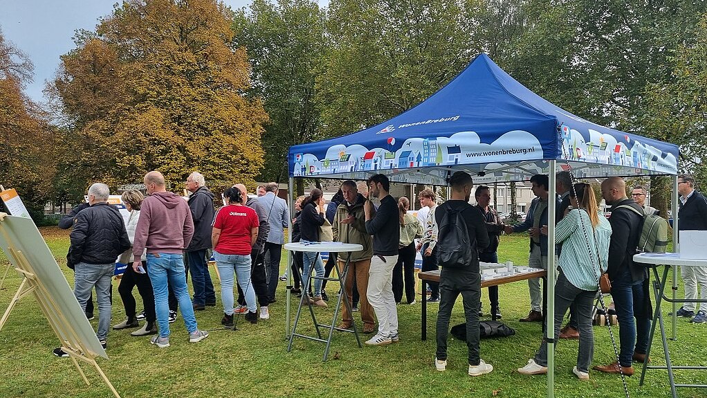 En dus streek de gemeente op woensdag 16 oktober tussen 16:00 en 19:00 uur neer op het grasveld aan de Bellinistraat, waar plannen zijn voor 160 appartementen voor ouderen. Van de omwonenden wilden we horen: wat vinden ze van de plannen? Hebben ze ideeën, wensen of zorgen? Om de drempel zo laag mogelijk te houden, gingen we naar de bewoners toe. We stonden met een tent op het grasveld waar de appartementen komen. Onder het genot van een kop koffie of thee konden bewoners de plannen bekijken op een maquette en panelen. Ze konden hun vragen stellen aan collega’s van de gemeente en partners die bij het project betrokken zijn. De opkomst was hoog en de informele sfeer zorgde voor ontspannen gesprekken. In de komende periode gaan we samen met een aantal bewoners de plannen verder uitwerken in een planteam. Zij zullen formeel advies geven aan de gemeente.