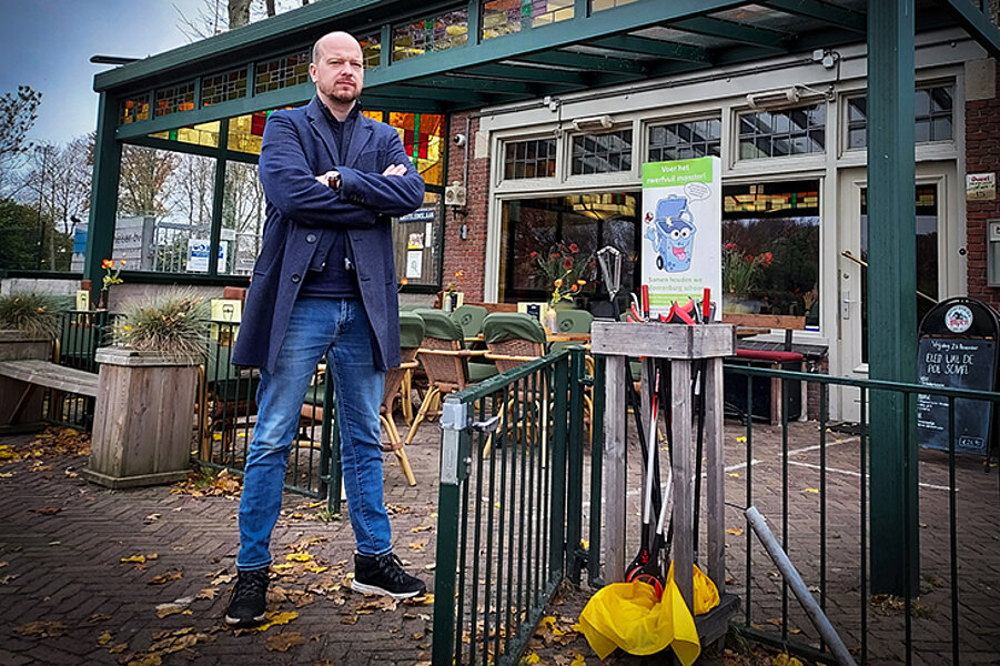 Als kind speelde hij al volop in Moerenburg, de ‘achtertuin’ van wijk de Armhoefse Akkers. De plek waar hij is opgegroeid. Gijs van Esch, sinds 11 jaar trotse eigenaar van café Zomerlust. Het is geen toeval dat deze ondernemer juist hier is neergestreken. Aan de rand van de stad, middenin de mooie natuur. En die wil hij graag zo houden. Vandaar de mand met zwerfafvalgrijpers op het terras.