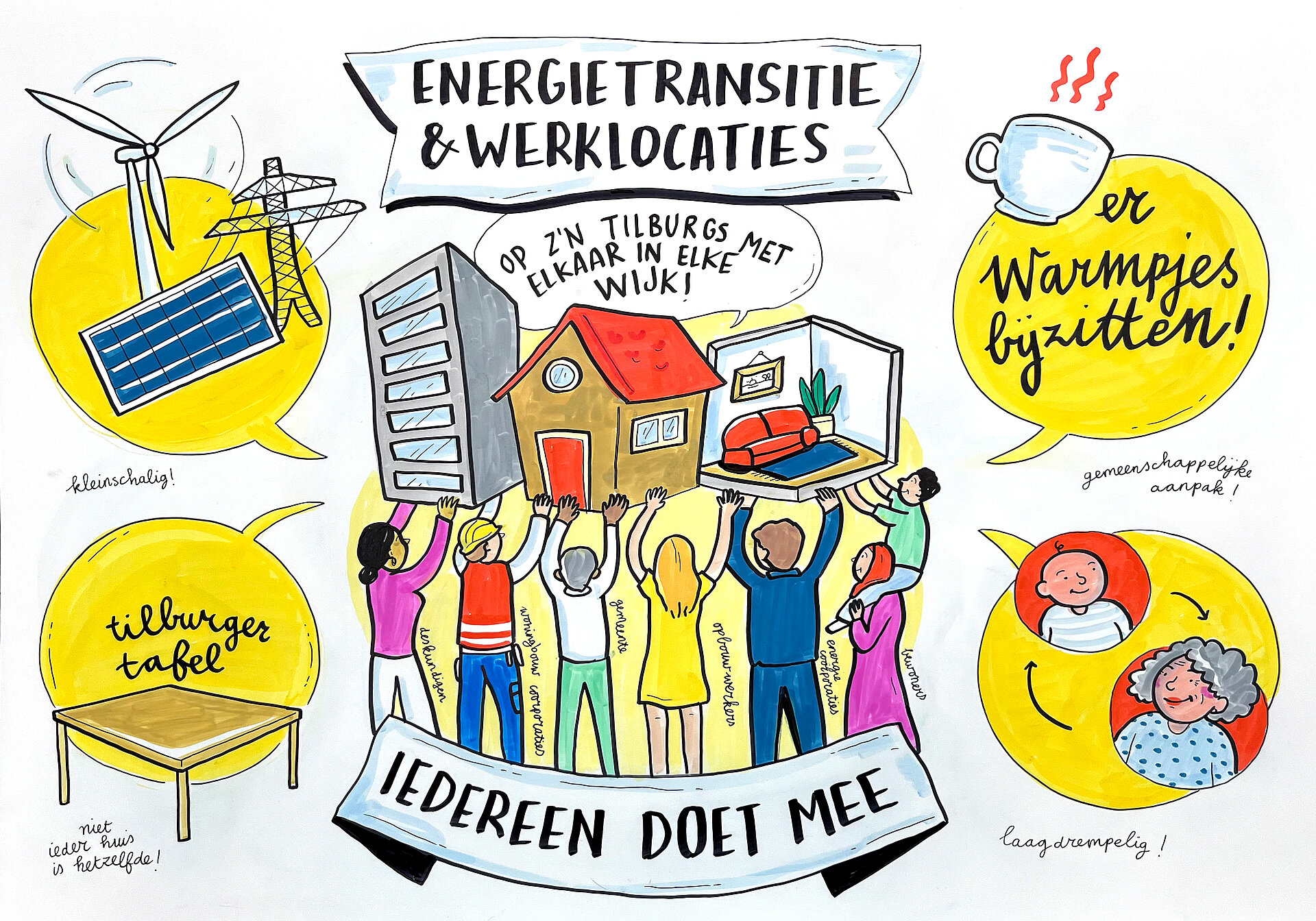 “Als je echt energie wilt besparen, moet je dat kleinschalig en laagdrempelig doen. We willen daarom in de wijk aan de slag. Met inwoners en partners in de wijk. Toewerkend naar een community voor energietransitie in de wijk met heldere doelen. Waar inwoners bij betrokken zijn. Dat kan bijvoorbeeld via de Tilburg tafel. Op deze manieren betrek je alle lagen in de wijk en kun je gezamenlijk toewerken naar minder energiegebruik.
