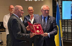 De heer Piet Spijkers (85) ontving vrijdag 25 september de hoogste Oekraïense erkenning uit handen van de Oekraïense ambassadeur Andriy Kostin. Hij werd benoemd tot Ridder in de Orde van Verdienste - 1ste klasse. Hij is de eerste Nederlander die deze onderscheiding ontvangt van president Zelensky.